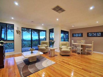Completely renovated in the last 3 years and looking absolutely spectacular this rendered SOLID BRICK home is a property for those who understand and appreciate quality real estate. Located on arguably the Dandenong Ranges best address on a near level 1/2 acre block and a backdrop that will be the envy of all your friends. The interior comprises of a new Caesar stone kitchen, renovated bathrooms, beautiful polished hardwood flooring, spacious open plan lounge - dining - kitchen area with another completely separate living zone at the children's bedroom end of the house, ducted heating, evap cooling, double garage with remote door, asphalt driveway, separate timber gym/spa room/ home office and various other sheds, and the list goes on and on.